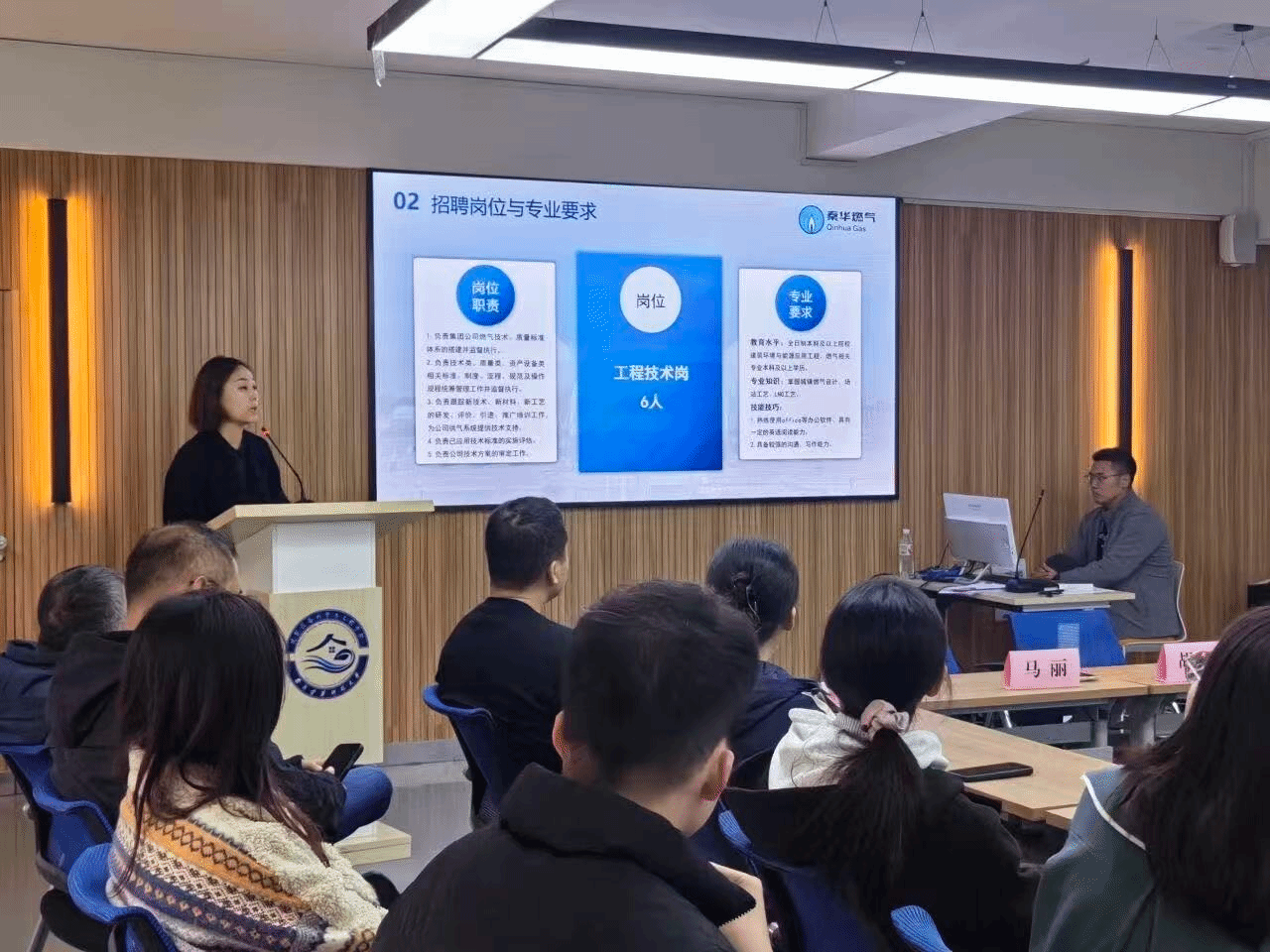 西安秦华燃气公司于10月23日,受邀在建科学院409A会议室开展燃气行业发展“校友经验分享会”。企业方详细介绍了公司的发展历程、业务领域和人才培养体系,并就2026届毕业生的招聘计划和岗位需求进行说明。在互动交流中,企业代表对毕业生关心的职业发展路径、薪酬待遇、培训体系等问题给予了细致的解答。